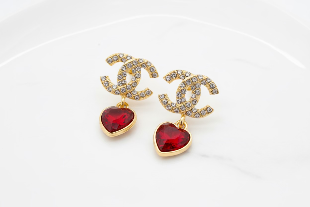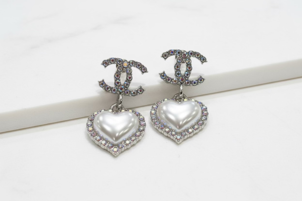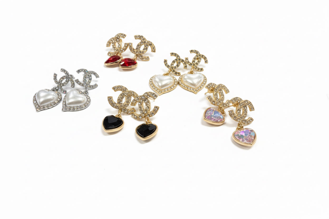 The Amouré CC Heart Drops blend timeless elegance with a romantic edge. Featuring a crystal-encrusted double-C stud and a faceted heart drop that reflects light beautifully, these earrings are designed to stand out without overdoing it.